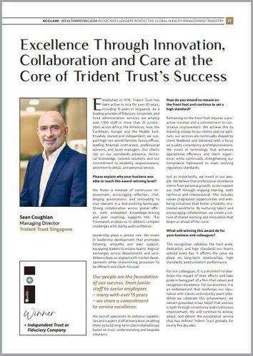 En esta entrevista, Sean comparte sus ideas sobre los valores, el liderazgo y la colaboración global que sustentan el galardonado enfoque de Trident Trust - y cómo el Grupo sigue evolucionando para satisfacer las necesidades de los clientes en más de 25 jurisdicciones en todo el mundo.